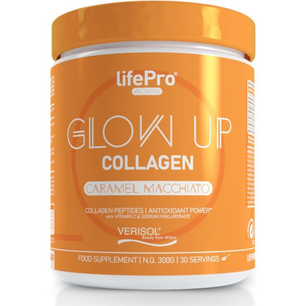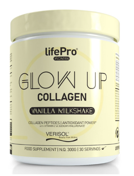 Life Pro Collagen Glow Up es un suplemento de nutricosmética diseñado para mejorar la salud de la piel, el cabello y las uñas desde el interior. Su fórmula avanzada contiene Colágeno Verisol®, Ácido Hialurónico, Vitamina C y Selenio, ingredientes respaldados científicamente que contribuyen a la elasticidad, firmeza e hidratación de la piel.