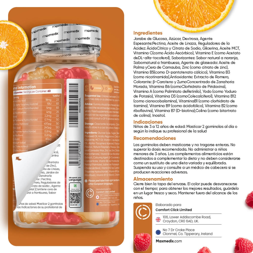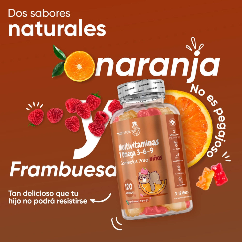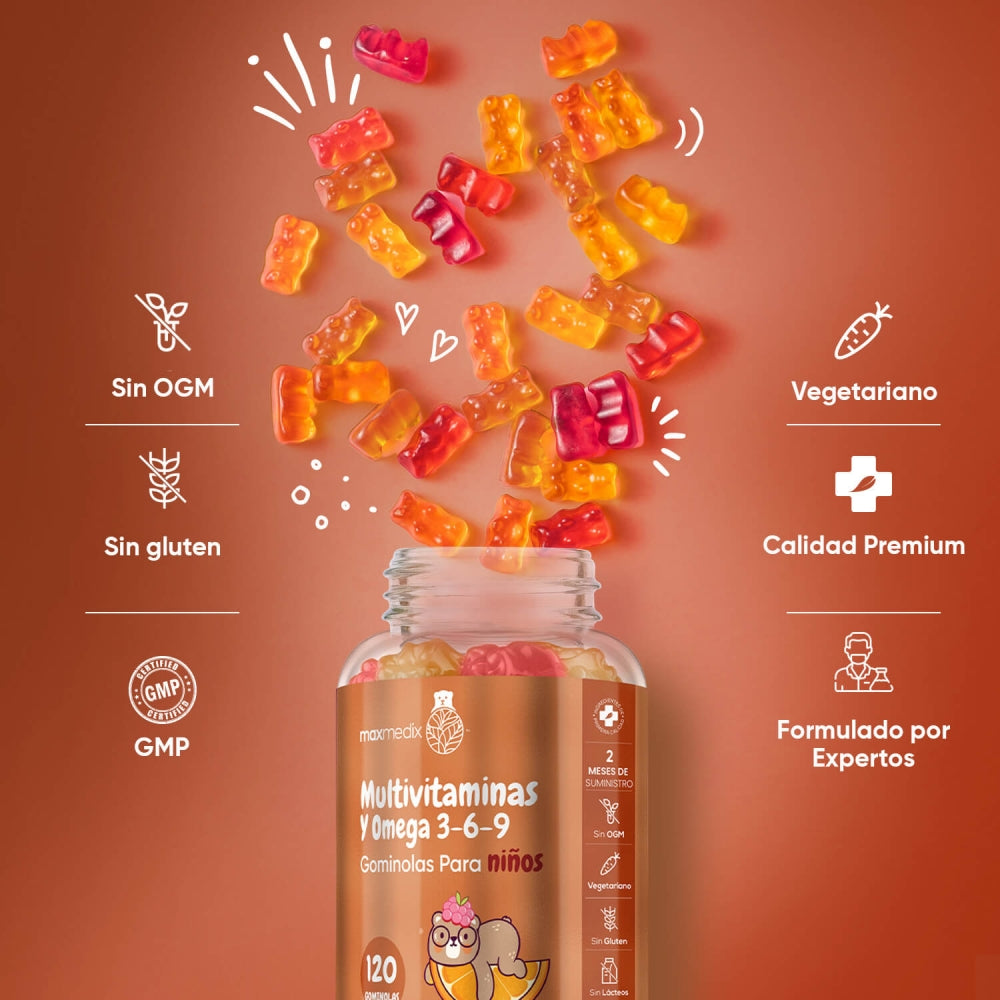 Gominolas Multivitaminas para Niños | 17 Vitaminas, Minerales y Omega 3-6-9 | 120 Gummies