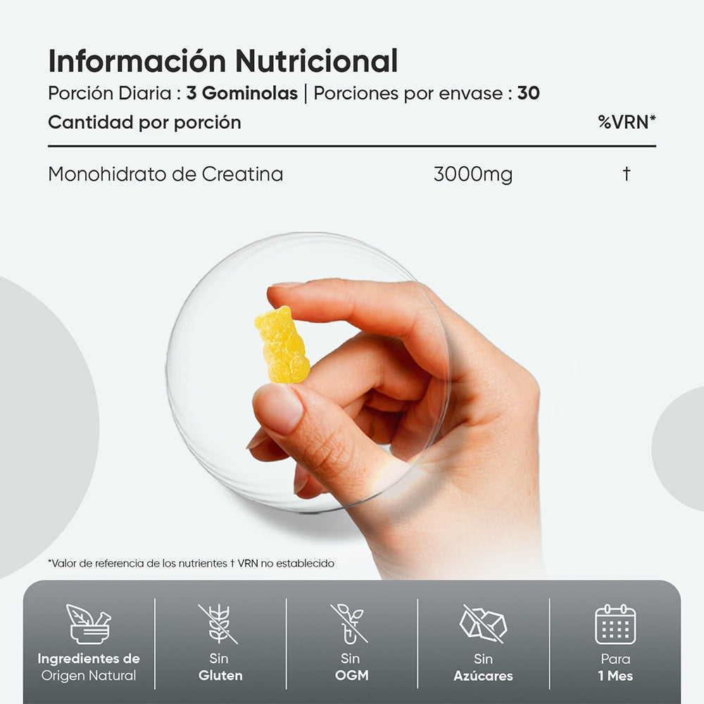 3000 mg de Monohidrato de Creatina por dosis (3 gominolas)